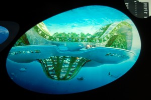 Pavilion of Urban Planet åskådliggör städerna ekologiska problem med övertygande iscensättningar av de förstörande processer som städer alstrar såsom massiv förorening, utarmning av arter och utvinning av material genom gruvdrift. Det var inte mycket som var nytt för oss innehållsmässigt men presentationen var överväldigande. En sal dominerades av en 30 meter bred jordglob skjuter upp genom golvet. Vi väntade med spänning på vilka lösningar som skulle presenteras i denna påkostade utställning. Men dessvärre var det vi såg varken något nytt eller imponerande. ganska tungsinta lämnade vi paviljongen.