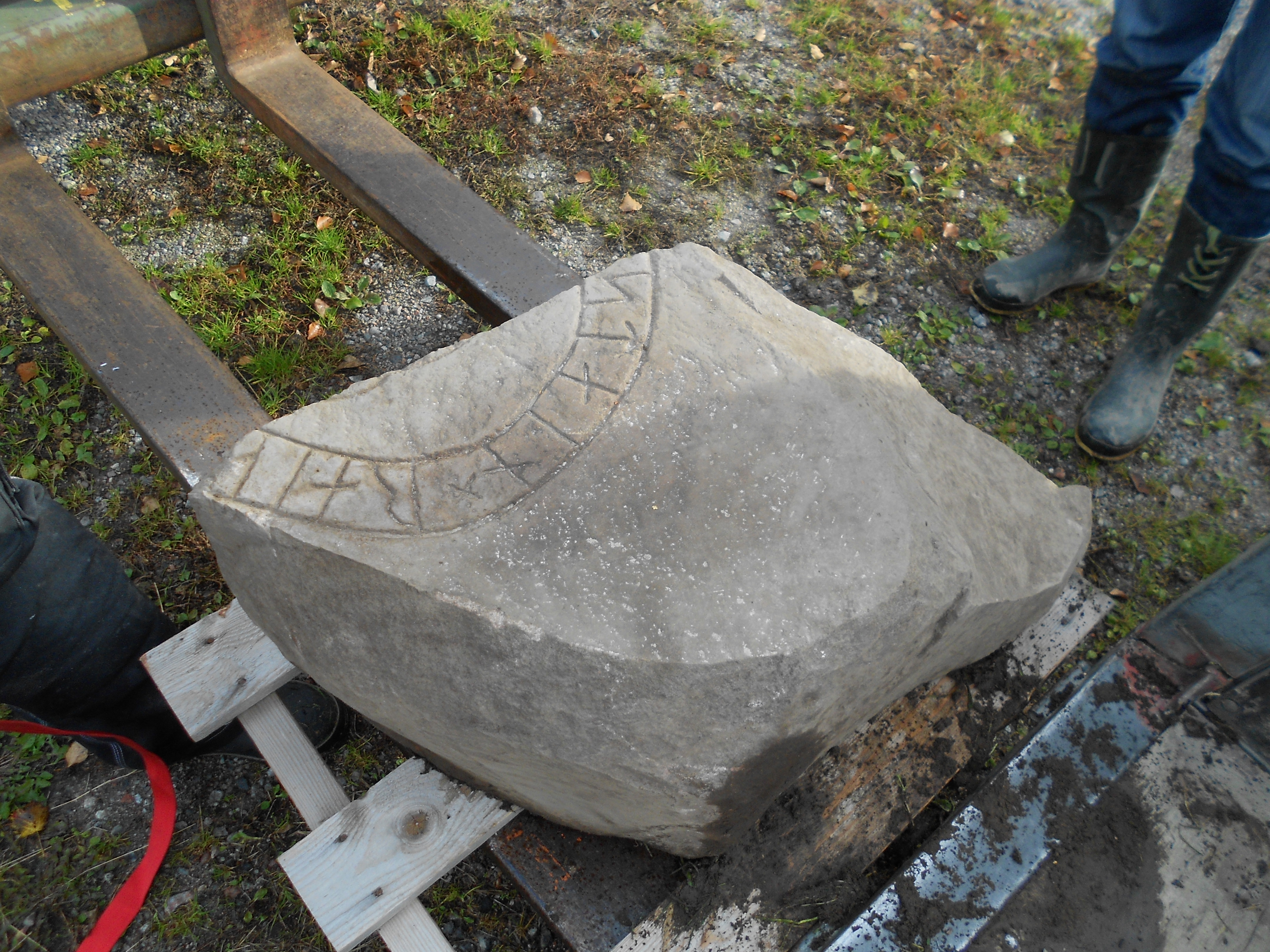 Eftersom alla runstensfragment som har påträffats i Björkö by eller inom det gamla stadsområdet Birka på Björkö finns på Historiska museet i Stockholm, togs beslutet att det nyfunna fragmentet också skulle flyttas dit. I fredags var därför Gunnar Andersson från SHM och jag ute på ön, och tack vare många hjälpsamma människor och maskiner kunde stenen tryggt föras över vattnet och in till huvudstaden, något som Gunnar har skrivit om i Birkaprojektets blogg.