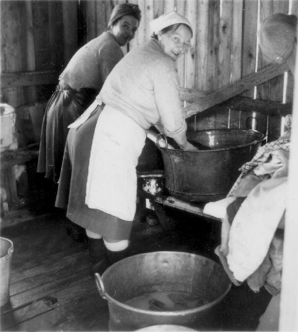 I bykstugan i Sjöända 1952. På bilden syns systrarna Greta och Gunhild Johansson. Foto: okänd, licens: cc-by