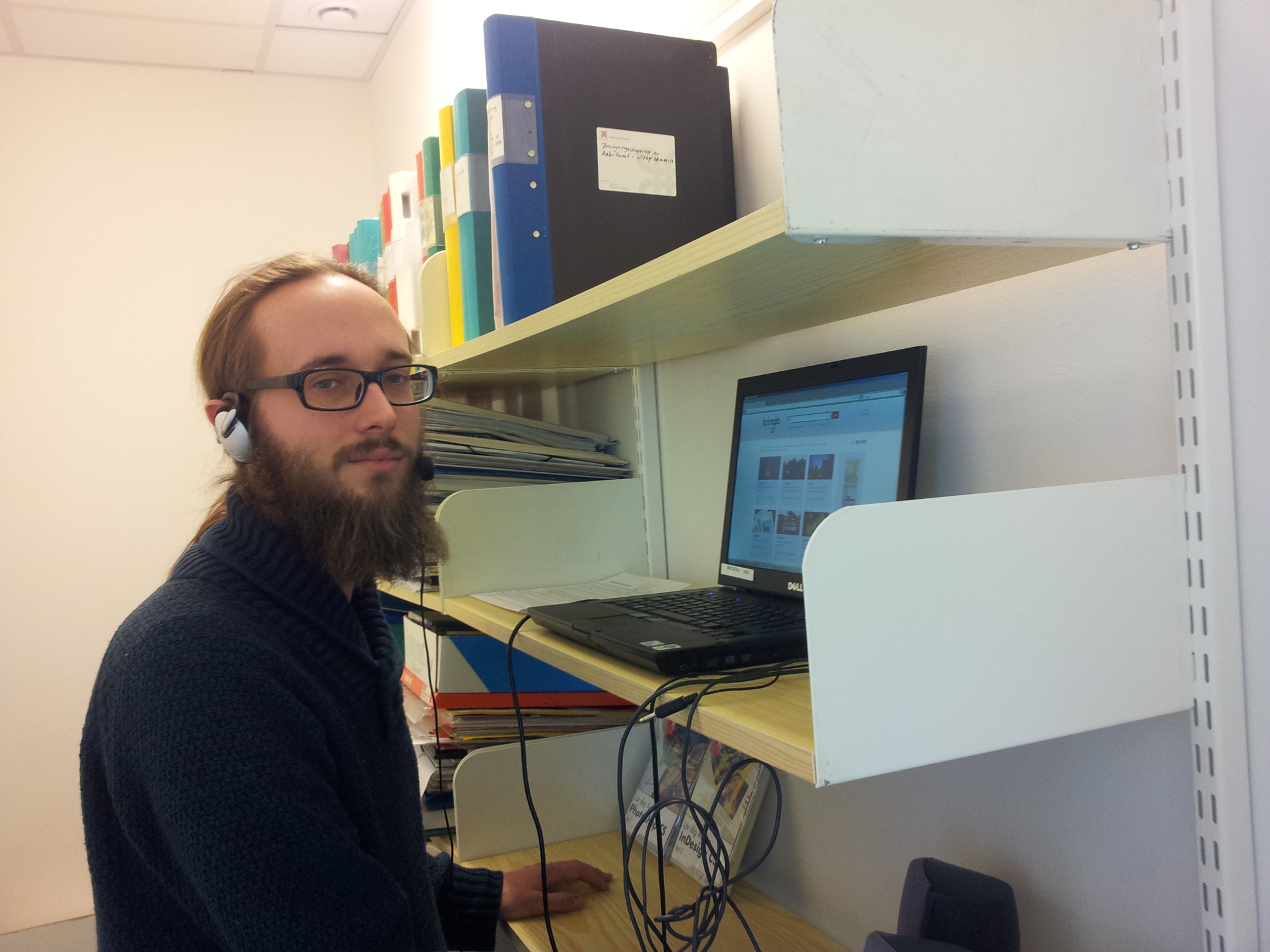 Instruktionsfilmerna är inspelade på enklast möjliga vis; med ett webbaserat program i ett förråd på Riksantikvarieämbetet i Visby. På bilden syns Johan Carlström vars röst guidar användarna i filmerna. Foto: Sophie Jonasson, licens: cc-by