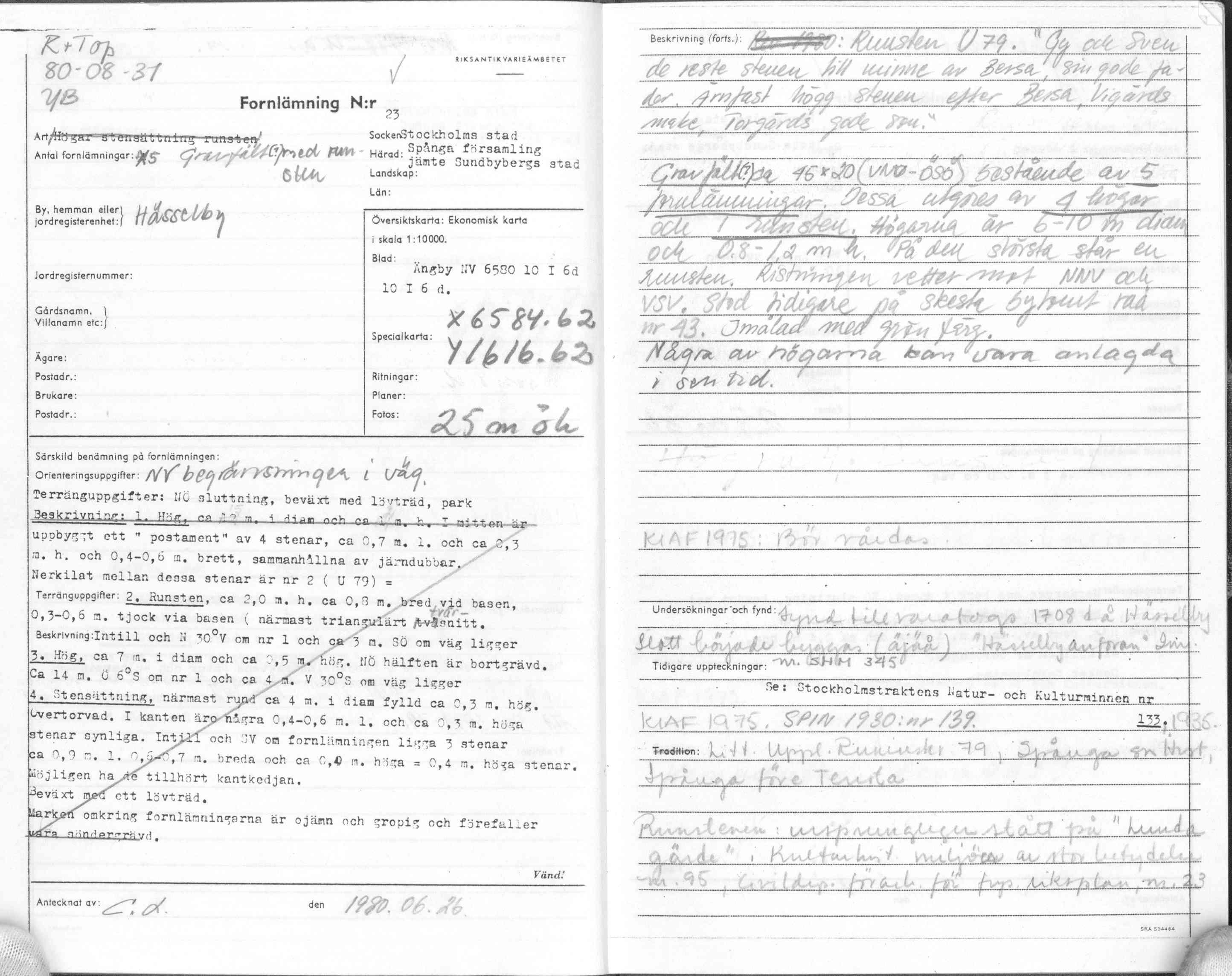 Undertecknad vill härmed medela att det har stagit en Runsten på Skjedesta gärde vid Lunda i Spånga som flyttades till Hesselby af Grosshandlar Servin då hann ägde Hesselby min far talte om det. Om det blve[!] uppmärksammat, så skulle det höras efter nu medan några lever som vet det Lantbrukaren Agust Jansson i Spångaby vet prisis var de stog hann är vist barnfödd i Lunda.
